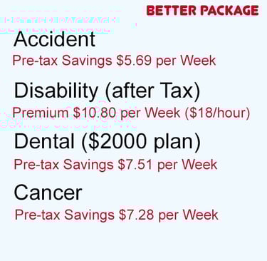 One of the great features is that it is affordable. Typically employees budget for 2x their hourly wage per week for our coverage.