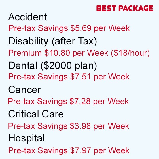 ND Riders: On-the-Job Accident Benefit Rider and Aflac Plus Rider – $5000 for stroke or 11 others.